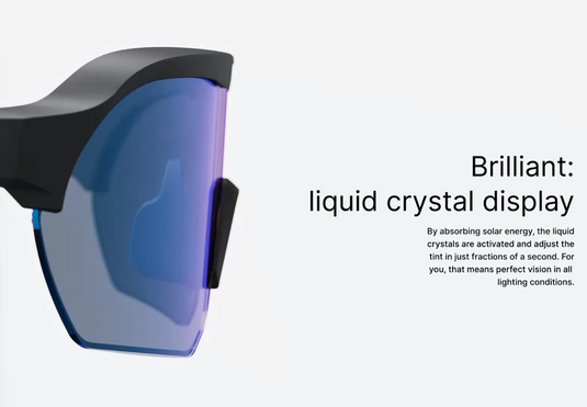 - Technologie ShadeTronic : des cellules solaires, des cristaux liquides et une électronique à faible courant teintent et déteintent les verres de lunettes en un clin d'œil. L'énergie nécessaire est obtenue à partir de la lumière solaire infrarouge. Fonctionne également derrière les vitres de voiture.